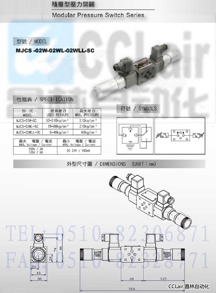 詳細信息 MJCS-02W-SC,MJCS-02WL-SC,MJCS-02WL-SC,積層型壓力開(kāi)閥