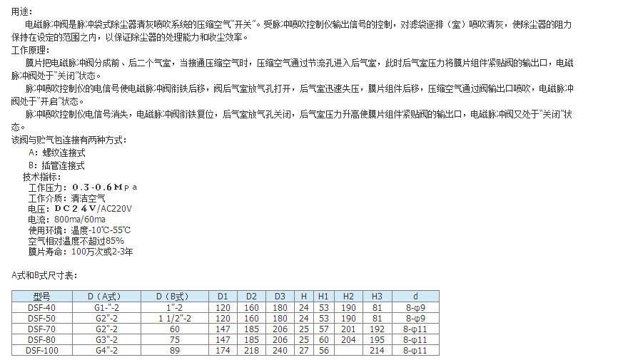 詳細信息 淹沒(méi)式脈沖閥TSF-50,TSF-70,TSF-80,TSF-100,