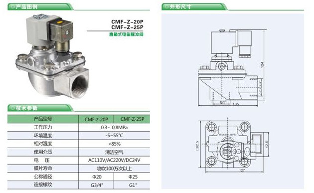 詳細信息 直角式脈沖閥CMF-Z-20P,CMF-Z-25P,CMF-Z-35P,CMF-Z-45P,CMF-Z-50P,膜片
