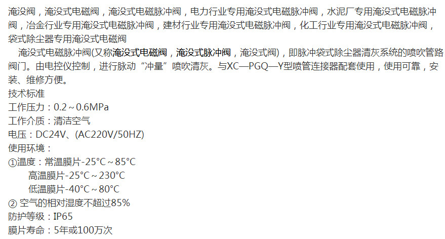 詳細信息 上海袋式型淹沒(méi)式脈沖閥DCF-Y-25,DCF-Y-40S,DCF-Y-50S,DCF-Y-62S,DCF-Y-76S,膜片