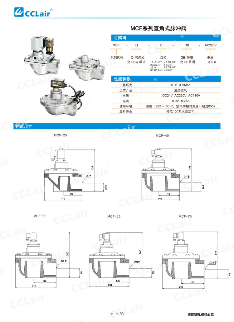 高原型直角脈沖閥MCF-20,MCF-25,MCF-40S,MCF-50S,MCF-65S,MCF-76S,MCF-35,