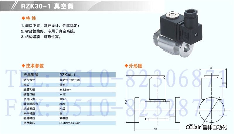 詳細信息 RZK30-1,直動(dòng)二位二通真空閥