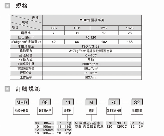 油桶分離型增壓器 MHD-0807-M-70-S1,MHD-0807-M-70-S2,MHD-0807-M-120-S1,MHD-0807-M-120-S2,MHD-0807-70-S1