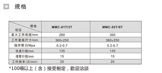 C型增壓缸壓床MMC-01T,MMC-03T,MMC-05T,MMC-08T