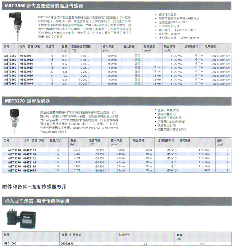 詳細信息 MBT3260,MBT5250,MBT5252,MBT3560,MBT3270,溫度傳感器