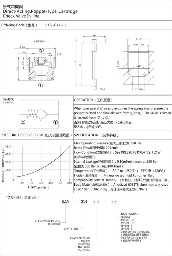 詳細信息 ILCV-G14-02,ILCV-G14-18,ILCV-G14-25,管式單向閥