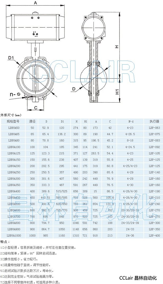 詳細信息 LDBUA50,LDBUA65,LDBUA80,LDBUA100,LDBUA125,LDBUA150,LDBUA200,對夾式軟密封蝶閥