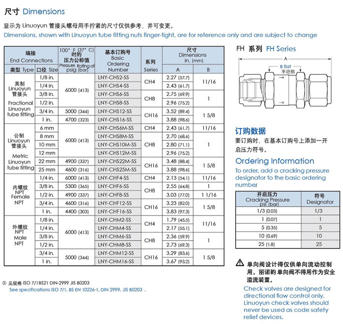 詳細信息 LNY-CHS2-SS,LNY-CHS8M-SS,LNY-CHS10M-SS,LNY-CHM6-SS,LNY-CHM8-SS,單向閥