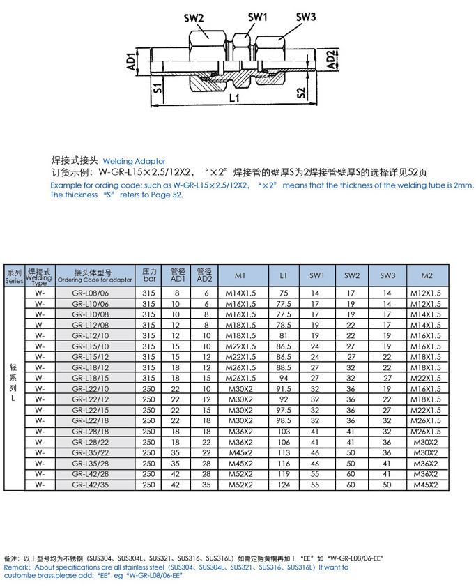 W-GR-L08/06,W-GR-L10/06,W-GR-L28/22,W-GR-L32/22,W-GR-L42/35,直通變徑中間焊接式接頭