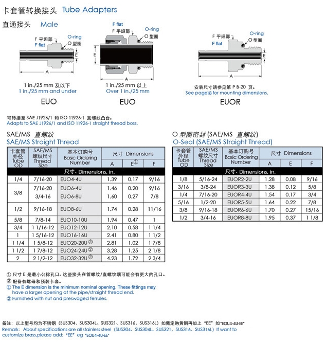 EUO4-4U,EUO6,EUO8,EUO10,EUO20,EUO32,EUOR2,EUOR3,EUOR4,EUOR5,EUOR6,直通外絲卡套接頭