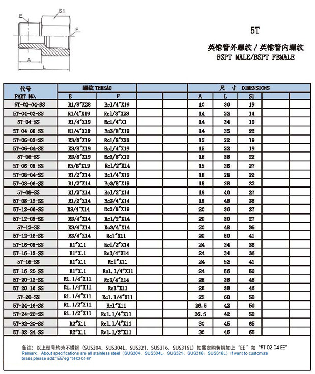 5T-02-04-SS,5T-04,5T-06,5T-08,5T-12,5T-20,5T-24,5T-32,直通內外絲接頭