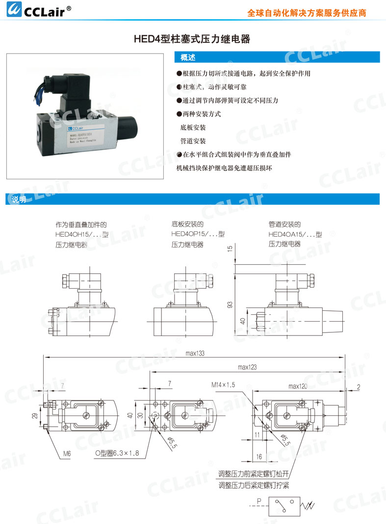 HED4OP,HED4OA,HED4OH,HED4OP15/50Z14L24S,HED4OA15/100Z14L110S,柱塞式壓力繼電器