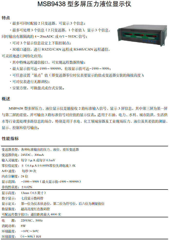 MSB9438-R1,MSB9438-R2,MSB9438-R3,MSB9438-R4,MSB9438-R5,多屏壓力液位顯示儀