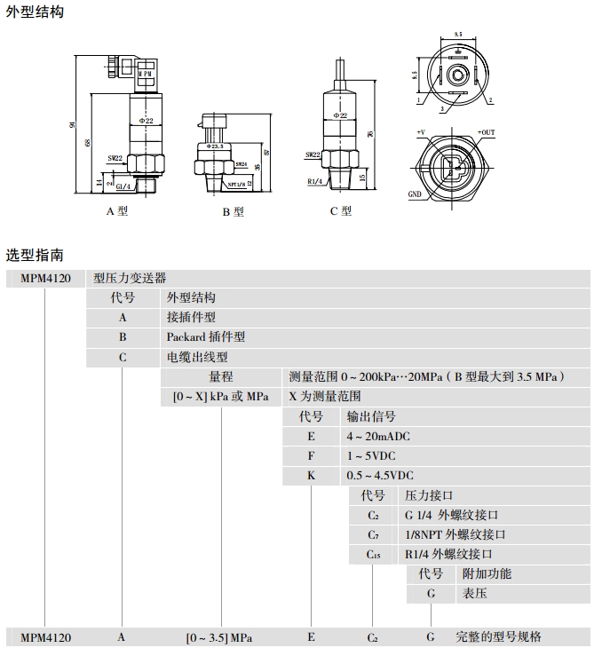 詳細信息 MPM4120A,MPM4120B,MPM4120C,壓力變送器