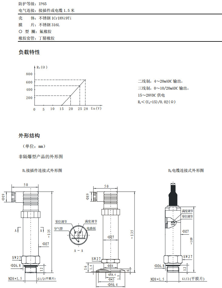 詳細信息 MPM480-0.1,MPM480-100,壓阻式壓力變送器