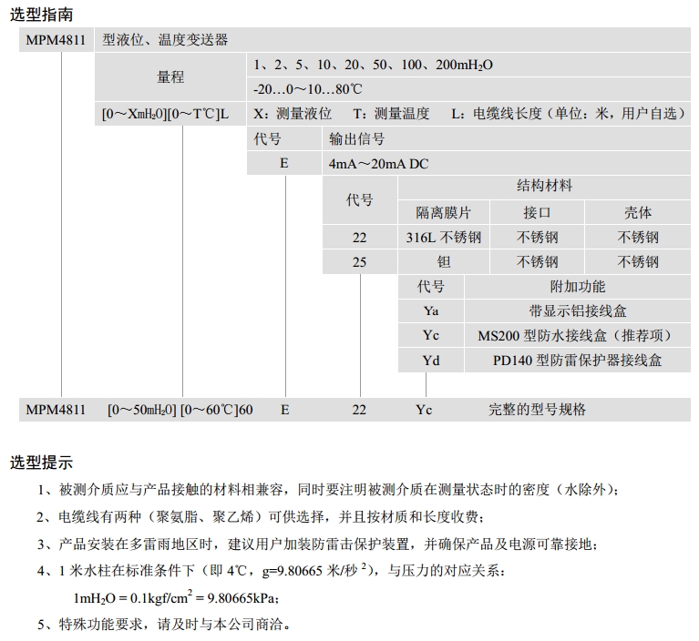 MPM4811-1,MPM4811-2,MPM4811-5,MPM4811-10,MPM4811-20,MPM4811-50,變送器