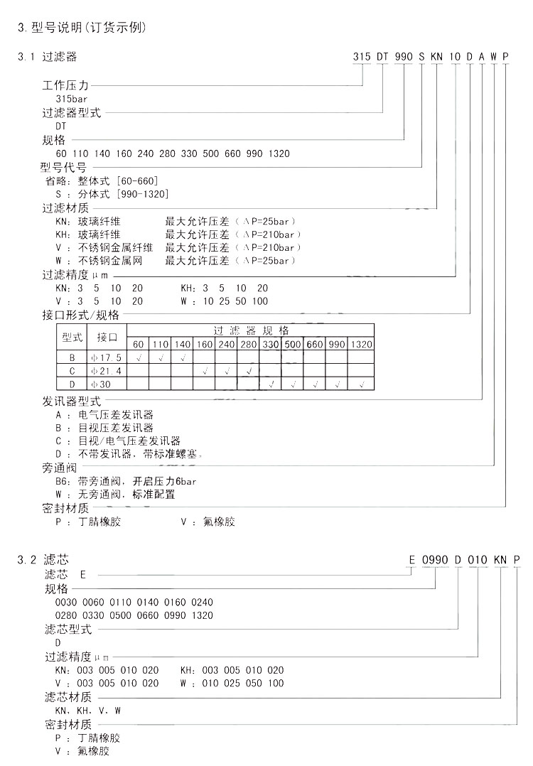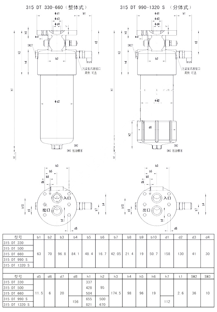 315DT60,315DT110,315DT140,315DT160,315DT240,315DT280,315DT330,315DT500,315DT660,315DT990S,315DT1320S,閥塊頂部過(guò)濾器