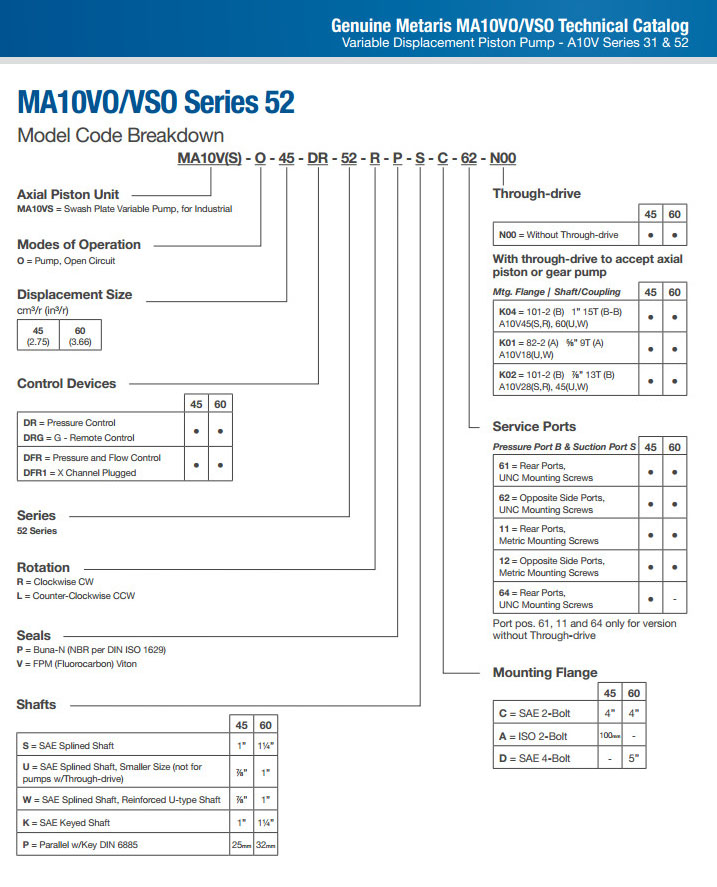 MA10VO-45,MA10VO-60,MA10VO-45-DR-52,MA10VO-60-DR-52,MA10VO-45-DRG-52,MA10VO-60-DFR1-52,Metaris柱塞泵