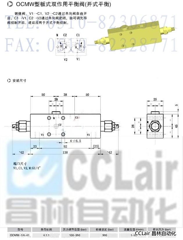 OCMW-1/4-41,板式雙作用平衡閥(開(kāi)式平衡)