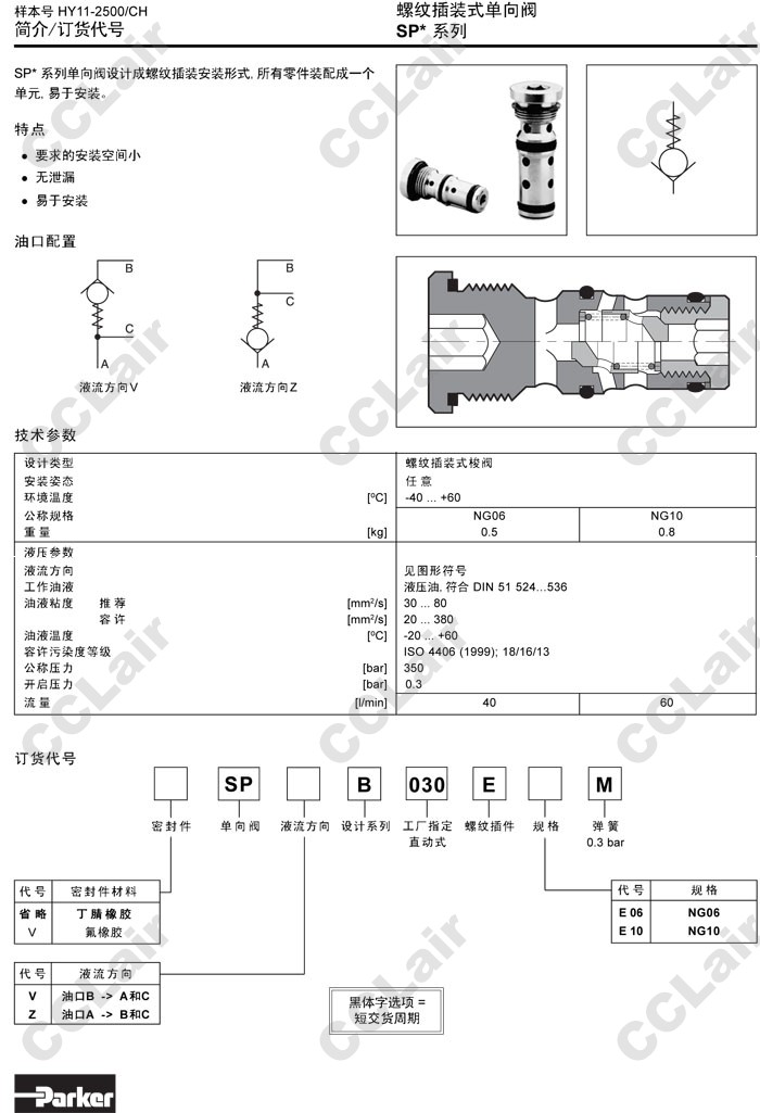 詳細信息 SPVB030EE06M,SPVB030EE10M,SPZB030EE06M,SPZB030EE10M,Parker螺紋插裝式單向閥