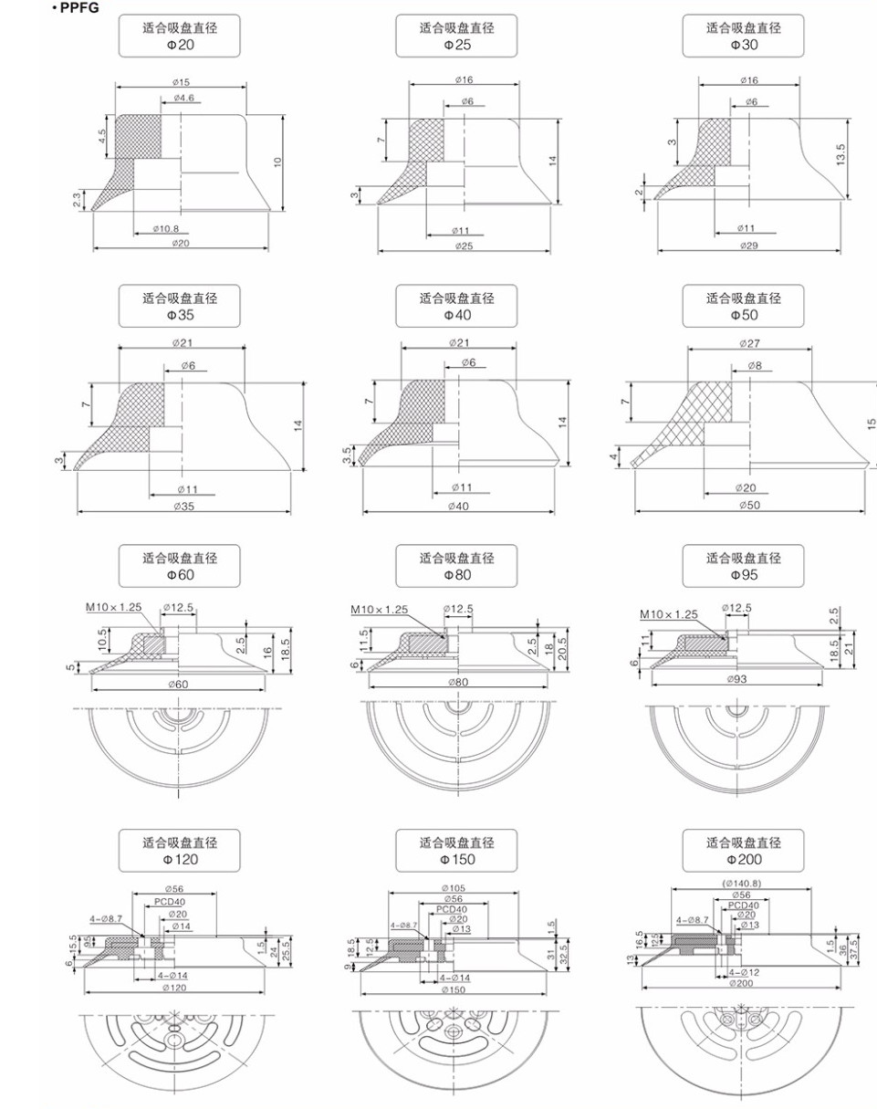 PPFG-2-N,PPFG-2-S,PPFG-2-NE,PPFG-2-SE,PPFG-3.5-N,PPFG系列標準型吸盤(pán)