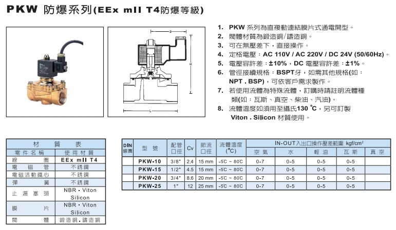 PKW-10,PKW-15,PKW-20,PKW-25,UNI-D防爆電磁閥 詳細信息 PKW-10,PKW-15,PKW-20,PKW-25,UNI-D防爆電磁閥