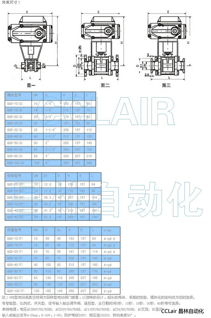 GUD型系列電動(dòng)真空(壓力)球閥采用回轉型電動(dòng)、電子調節式閥門(mén)驅動(dòng)裝置,可以通過(guò)外接電源的切換(用手動(dòng)轉位開(kāi)關(guān)或電腦控制)或外部輸入信號,來(lái)實(shí)現閥門(mén)開(kāi)、關(guān)或中間位置的控制,從而達到接通或切斷真空管路中氣流的目的。閥門(mén)為直通式,靠球面密封,因而既能用在真空狀態(tài)下,也能在低壓狀態(tài)下使用,并可任意位置安裝。