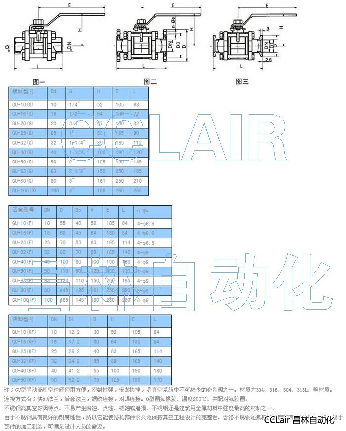 GU型系列真空(壓力)球閥是適用于真空系統中接通或切斷管路的介質(zhì)流。該閥為直通式手動(dòng)球閥,靠球面密封,因而既能用在真空狀態(tài)下,也能在低壓狀態(tài)下使用,并可任意位置安裝。