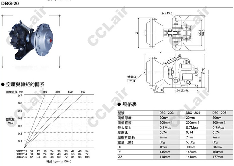 詳細信息 DBG-203,DBG-204,DBG-205,碟式制動(dòng)器,CCLair