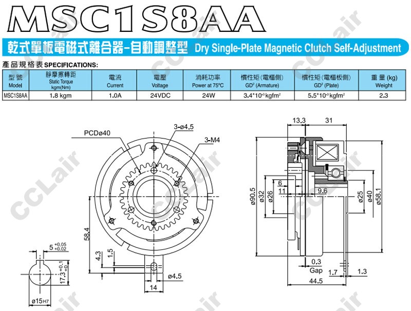 詳細信息 MSC1S8AA,電磁離合器,CCLair