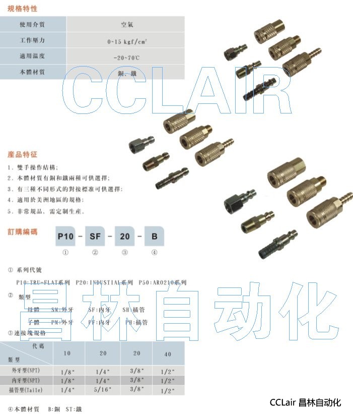 P50-SF10,P50-PF20,P50-SM30,P50-PM40,P50-SH10,P50-PH20,美式快換接頭