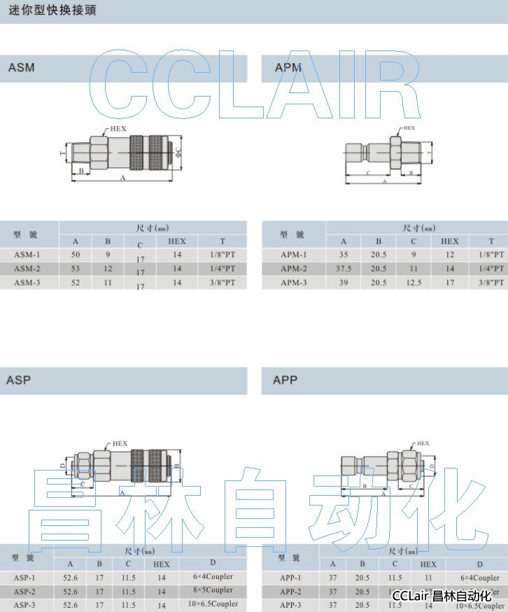ASM-1,ASM-2,ASM-3,APM-1,APM-2,APM-3,ASP-1,ASP-2,ASP-3,APP-1,APP-2,APP-3,迷你型快換接頭