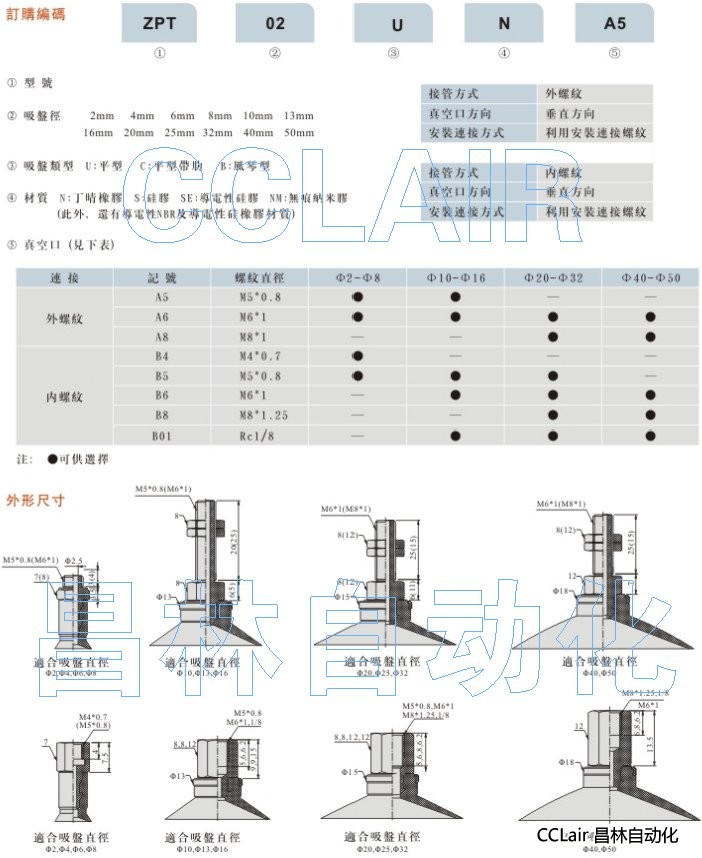 ZPT-02-U-N-A5,ZPT-04-U-N-A5,ZPT-06-U-N-A5,ZPT-08-U-N-A5,不帶緩沖垂直接管式真空吸盤(pán)