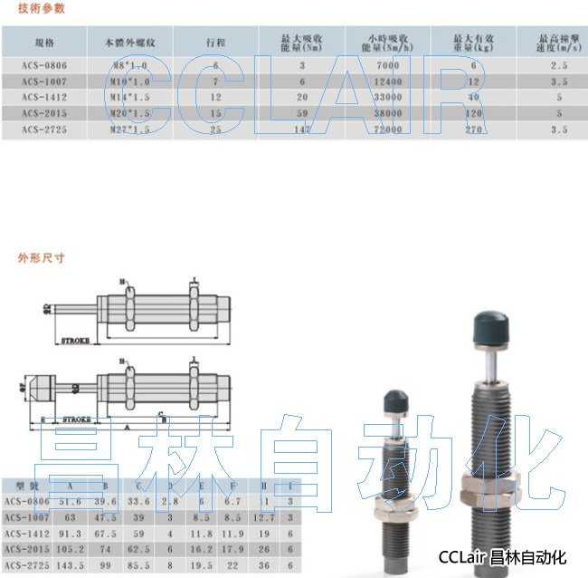 ACS-0806,ACS-1007,ACS-1412,ACS-2015,ACS-2725, 油壓緩沖器