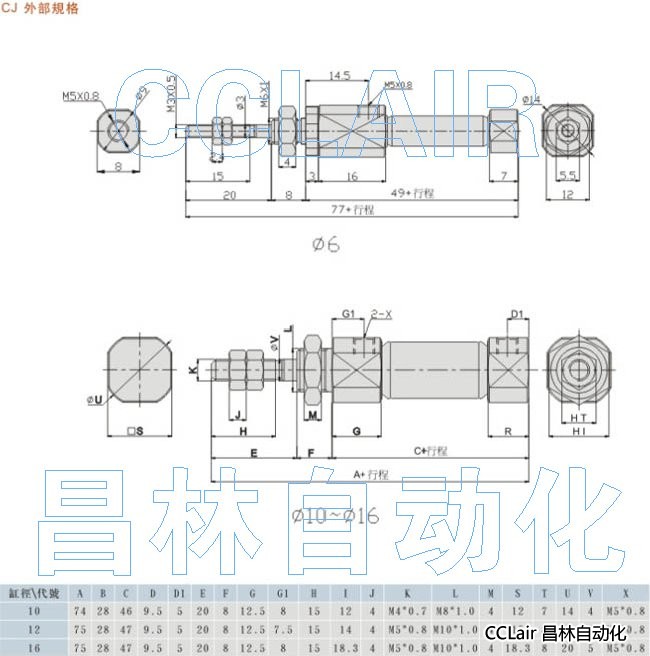 CJ-6X10-S,CJ-6X15-S,CJ-10X10-S,CJ-12X10-S,CJ-16X10-S,筆型氣缸