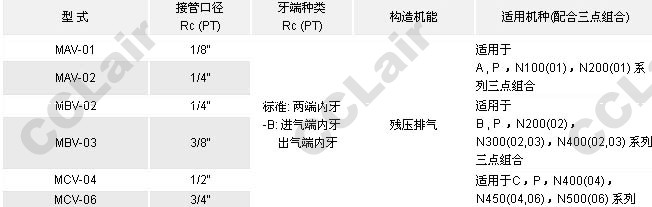 氣立可(chelic),MAV--01,MAV-02,MBV-02,MBV-03,MCV-04,MCV-06,氣源開(kāi)關(guān)