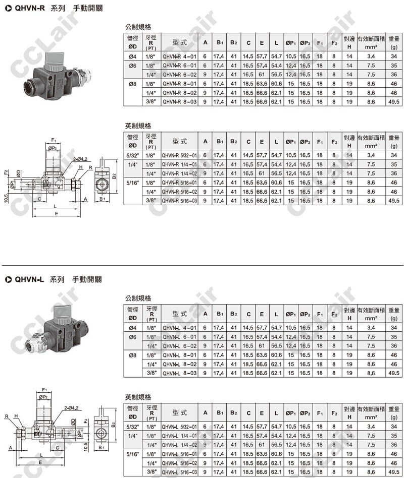 氣立可(chelic),QHV4,QHV6,QHV8,QHV10,QHV12,QHVN-N4,QHVN-R4,QHVN-L4,QHVN-R6,QHVN-N6,QHVN-L6,