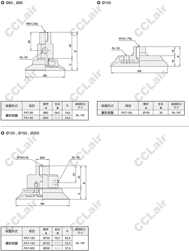 -25,PAT-30,PAT-35,PAT-40,PAT-50,PAT-60,PAT-80,PAT-100,PAT-120,PAT-150,PAT-200,真空吸盤(pán)