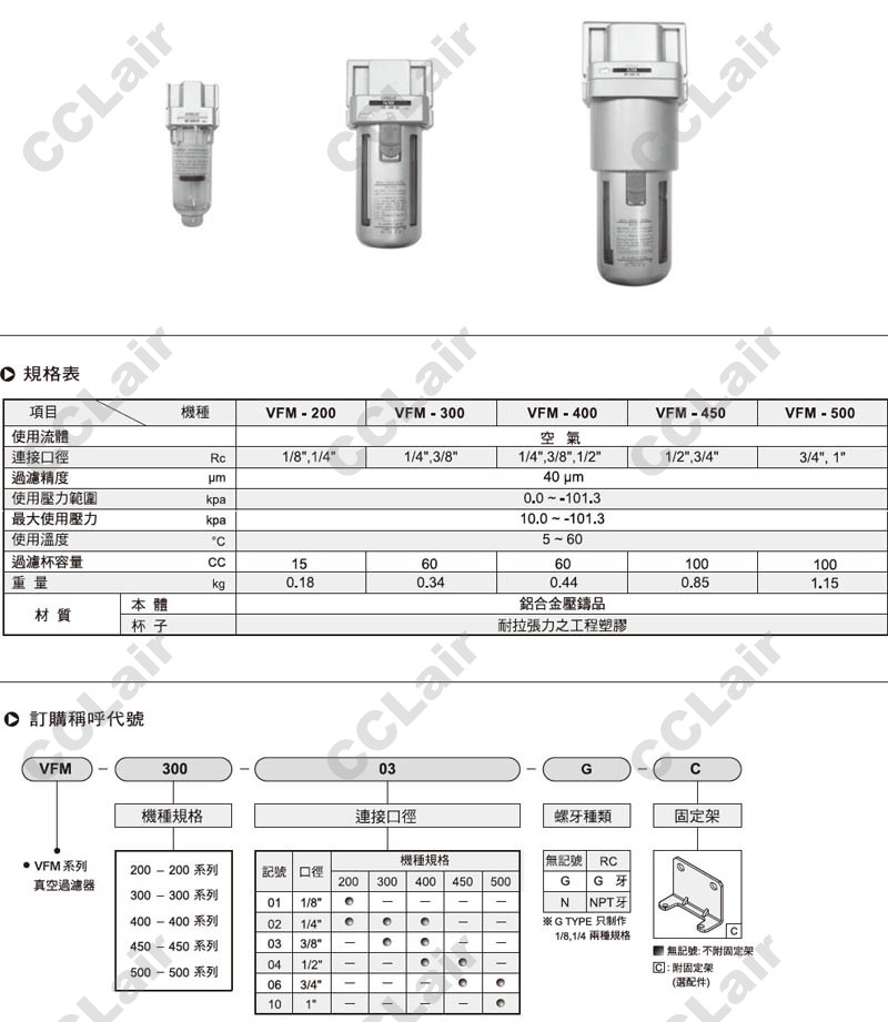 氣立可(chelic),VFM-200-01-G-C,VFM-300-02,VFM-300-03,VFM-400-02,VFM-450-04,VFM-500-06,真空過(guò)濾器