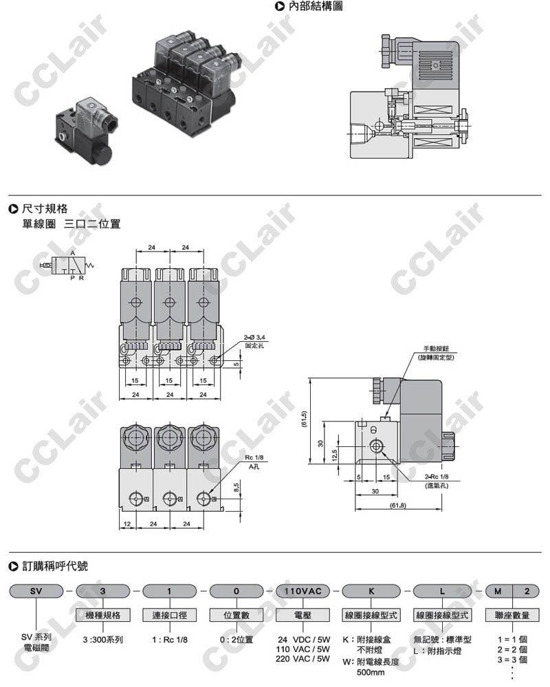 氣立可(chelic),SV310-110VAC-K,SV310-24VDC-K,SV310-220VAC-K,SV310-110VAC-W,電磁閥