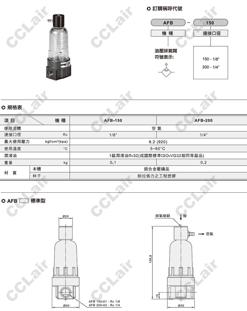 詳細信息 氣立可(chelic),AFB-150,AFB-200,排氣閥