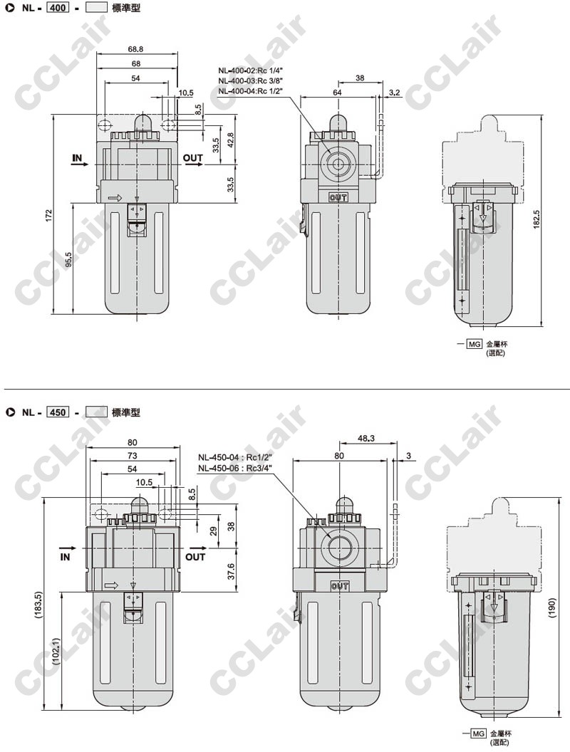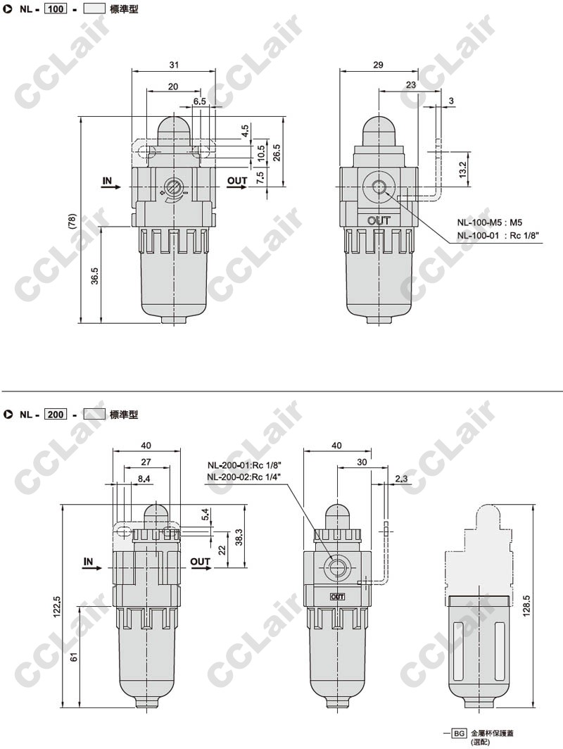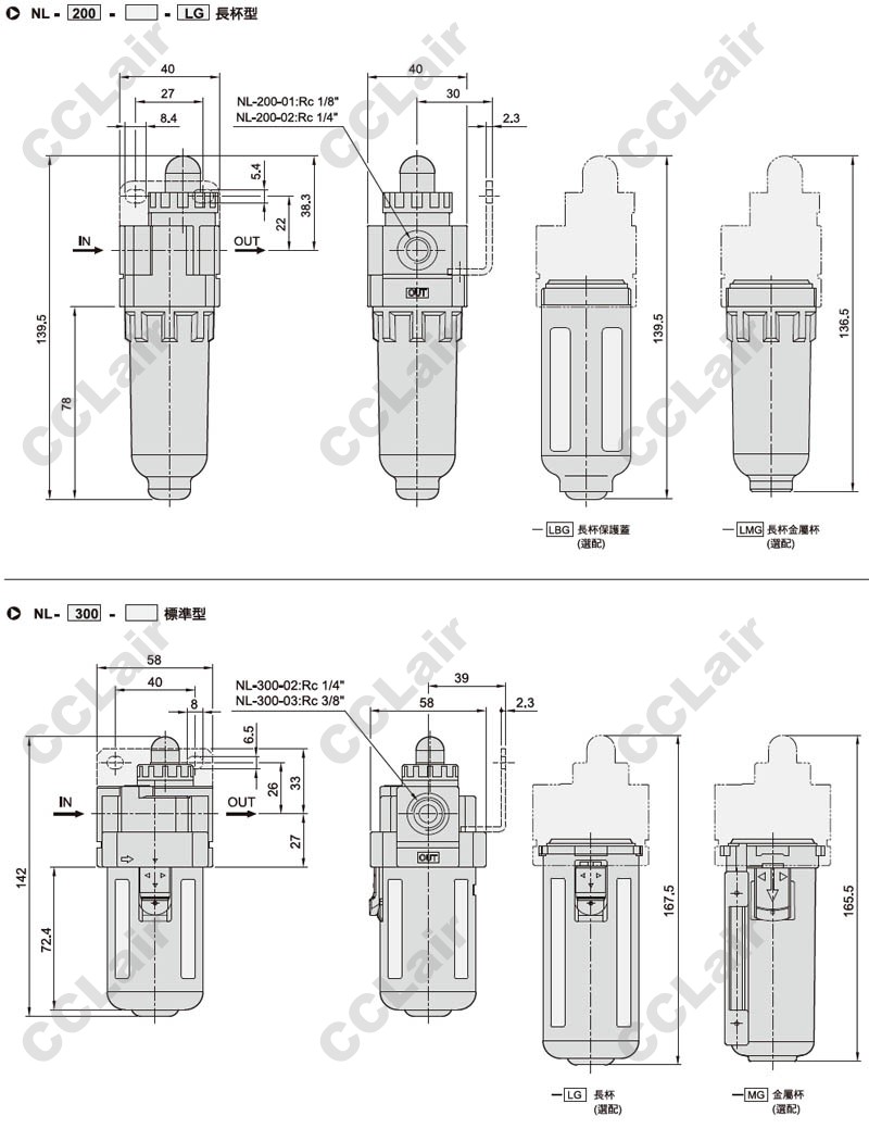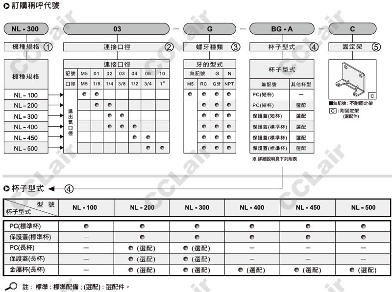 氣立可(chelic),NL-100,NL-200,NL-300,NL-400,NL-450,NL-500,NL-200-01-G-H-F1,NL-300-02-G-H-F1,給油器