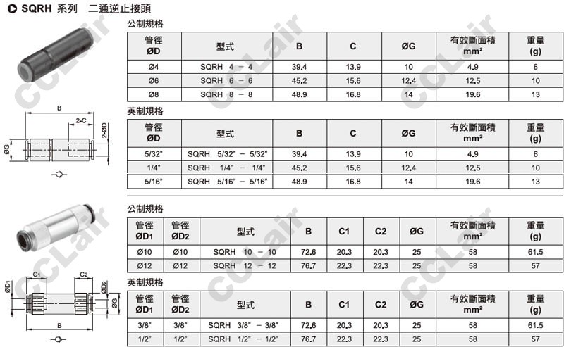 氣立可(chelic),SQRH6,SQRH8,SQRH10,SQRH12,SQRH4-4,SQRH5/32,SQRH1/4,SQRH5/16,SQRH3/8,SQRH1/2