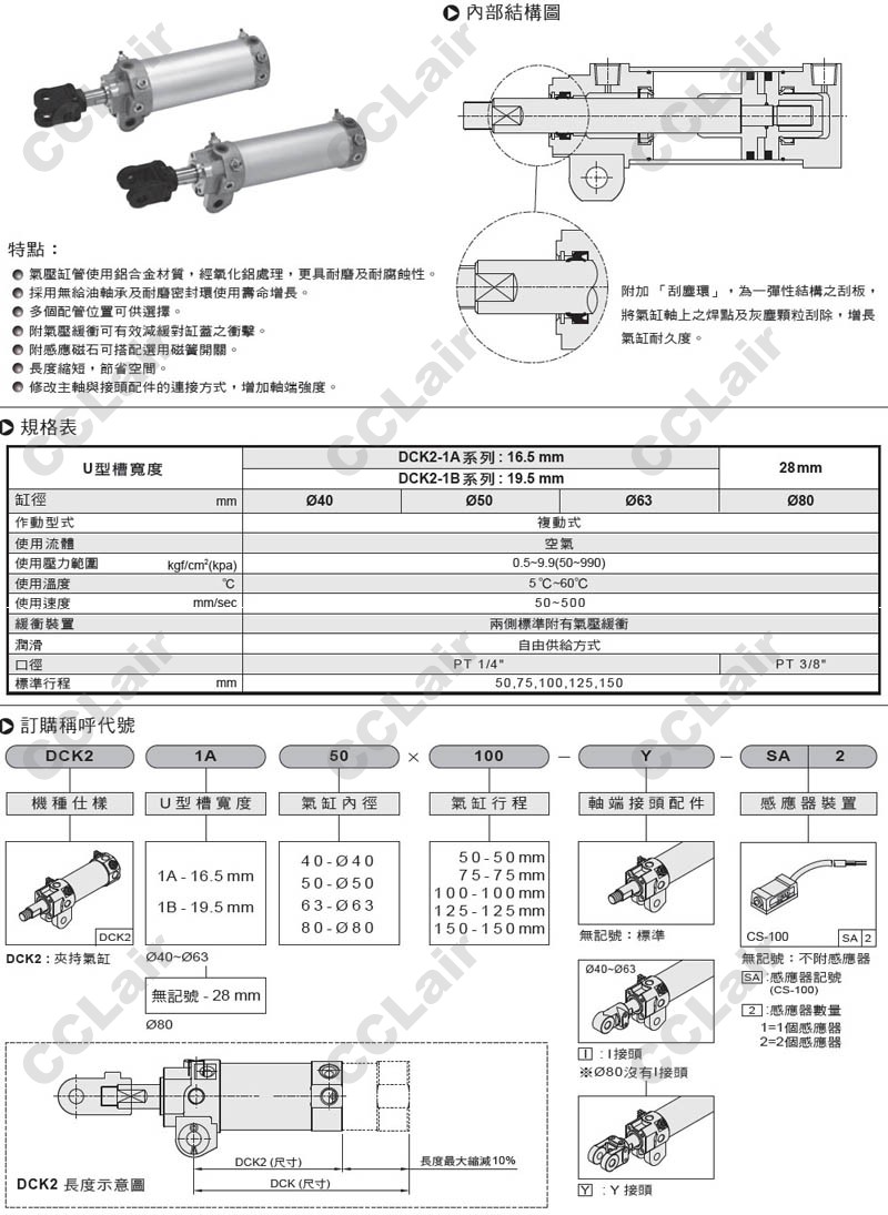 DCK21A40*50-Y-SA2,DCK21A40*75-Y-SA2,DCK21A40*100-Y-SA2,DCK21A40*125-Y-SA2,DCK21A40*150-Y-SA2,
