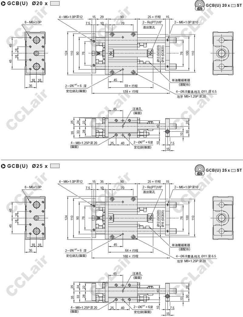 ![]() ![]() ![]() GCB20*75-SA2,GCB20*100-SA2,GCB20*125-SA2,GCB20*150-SA2,GCB20*200-SA2,導桿氣缸組合