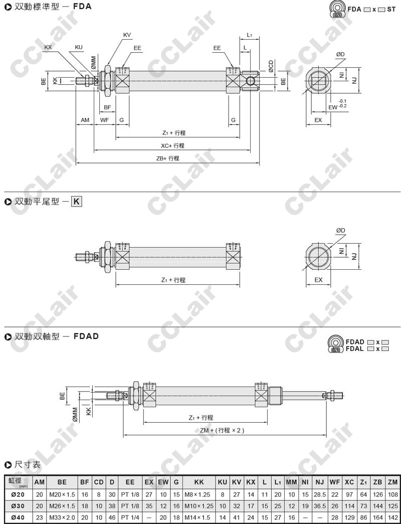 氣立可(chelic),FDA20*25,FDA30*50,FDA40*75,FDAD40*100,FDAD20*50,FDAD30*25,不繡鋼管氣缸