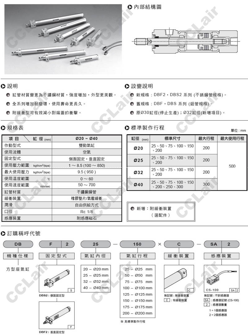 氣立可(chelic),DBS2-20*25,DBF2-25*50,DBS2-32*100,DBF2-40*75,DBS2-25*50,方型座氣缸