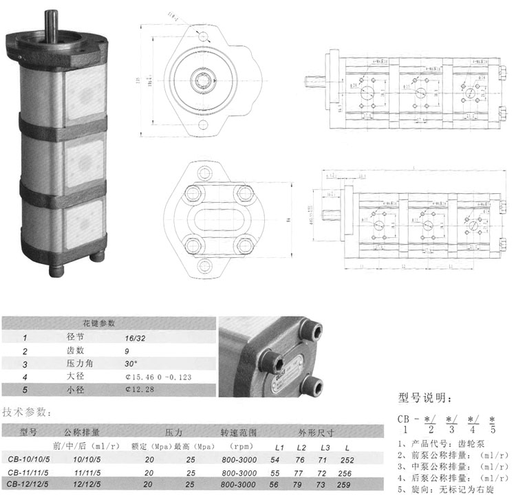 詳細信息 CB-10/10/5,CB-11/11/5,CB-12/12/5,三聯(lián)齒輪泵
