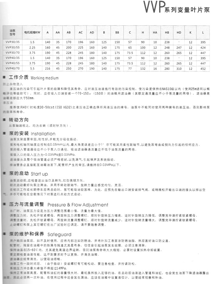 VVP40/20,VVP40/35,VVP40/55,VVP40/70,