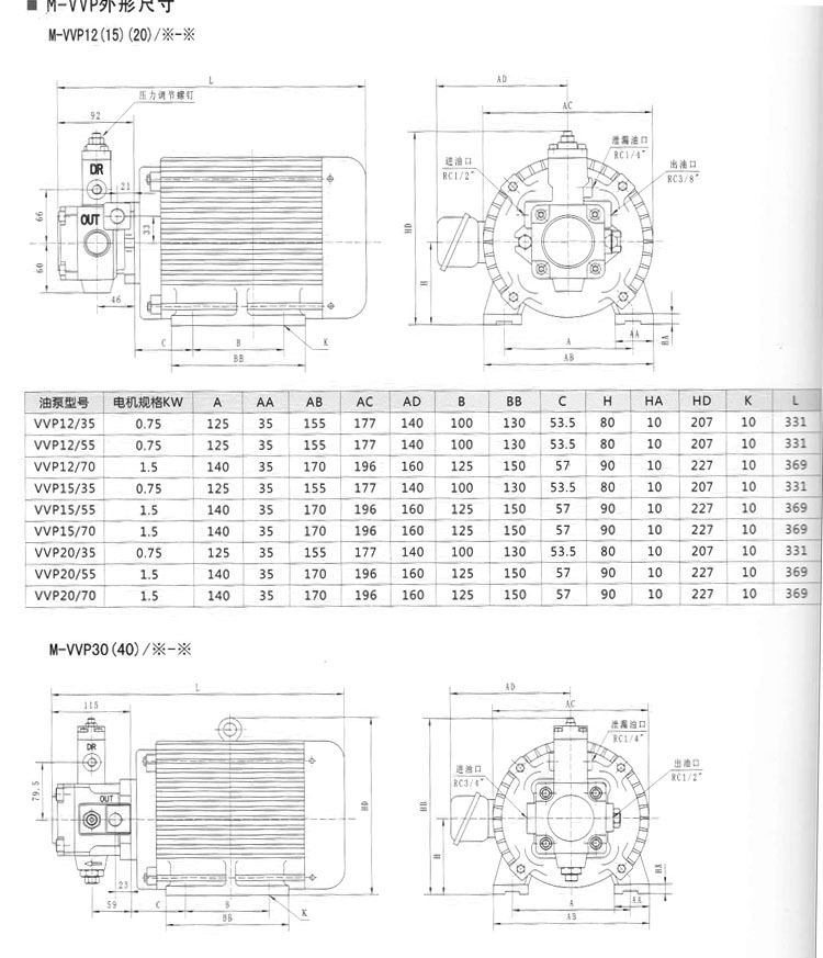 VVP12/20,VVP15/35,VVP20/55,VVP30/70,M-VVP40/20,M-VVP30/35,可變排量葉片泵